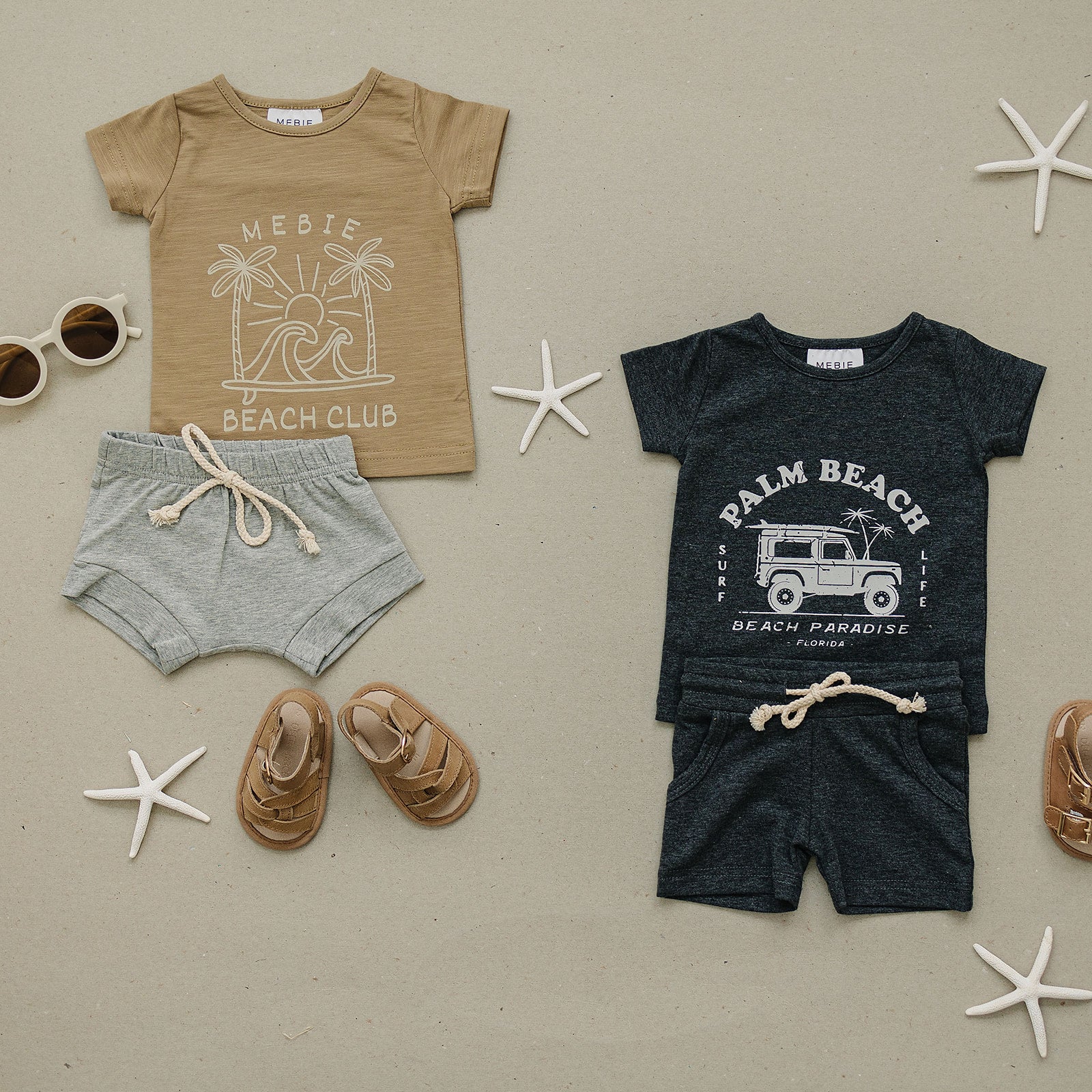 These are our cotton shorts. They are made out of a cotton fabric, they have an elastic and a faux tie on the waist! We also love the functional pockets.